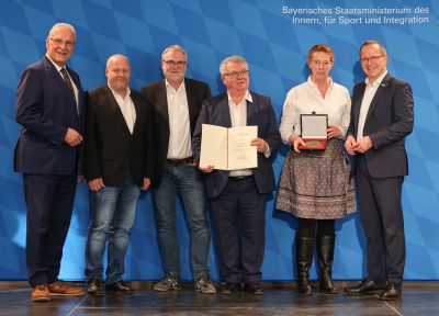 Innenminister Joachim Hermann händigte, gemeinsam mit dem Präsidenten des Bayerischen Landessportverbandes Joerg Ammon die Sportplakette des Bundespräsidenten, an den Vorsitzenden Alexander Schraut und seinen Vorstandsmitgliedern des SV Amendingen, aus.